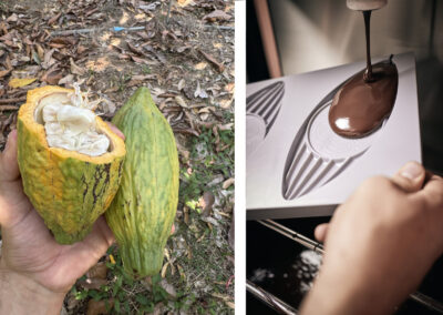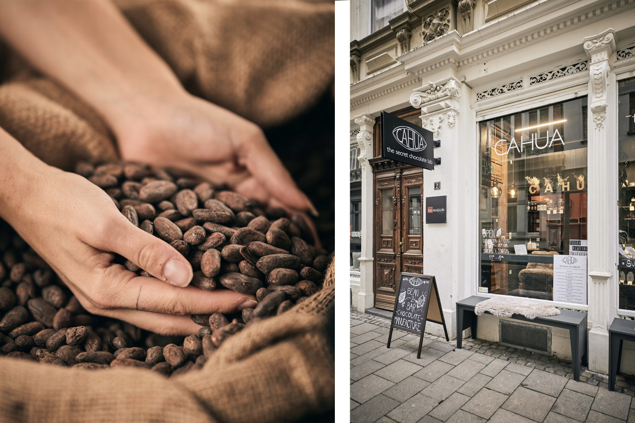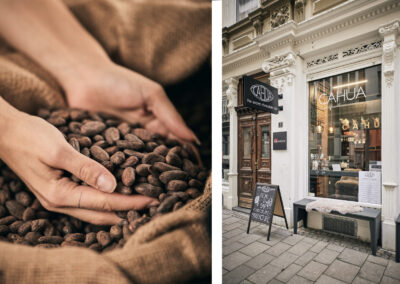 All diese Fragen haben nach und nach einen Traum geformt, der nun realisiert wurde: der Traum von purer, handgefertigter Schokolade, ohne Leid und mit der Umwelt. So entstand die Vision von Cahua, the secret chocolate lab. Cahua, das kommt von Cacahuatl, ein Wort, das aus dem Nahuatl stammt, der Sprache der Azteken, und “Kakao” bedeutet. Schon die Azteken waren sich der positiven Wirkung der Kakaobohnen bewusst und tranken Kakao Getränke zu Zeremonien. Ihnen wurde eine aufheiternde, kräftigende und aphroditisierende Wirkung nachgesagt.