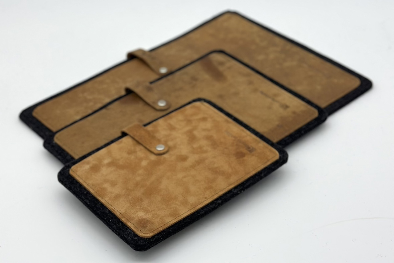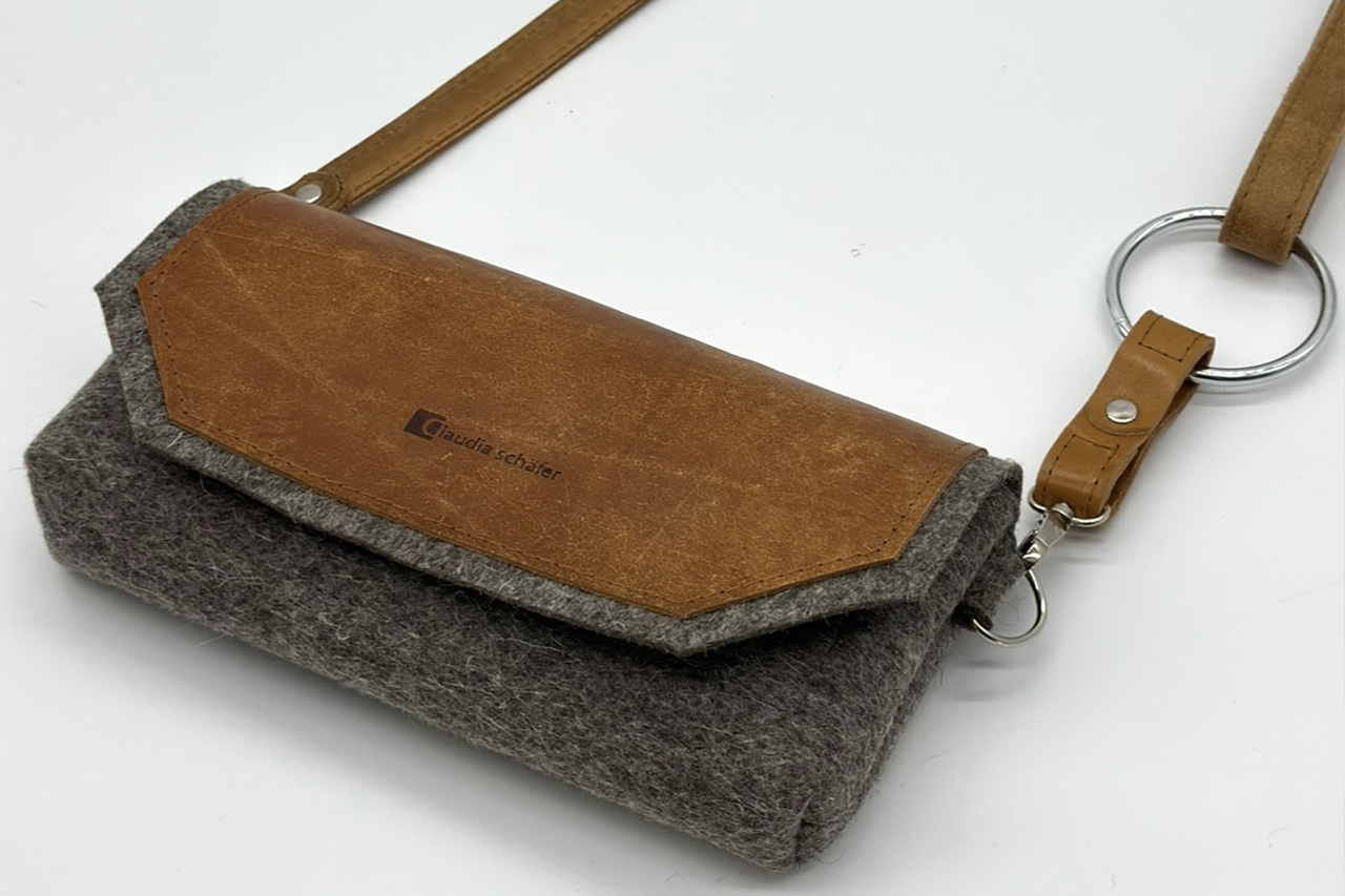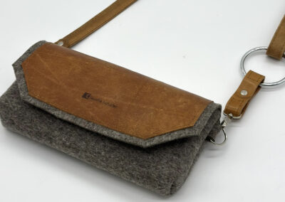Turnkastenleder bekommt bei mir ein zweites Leben. Kombiniert mit der Langlebigkeit von Wollfilz entstehen treue BegleiterInnen, die bleiben.