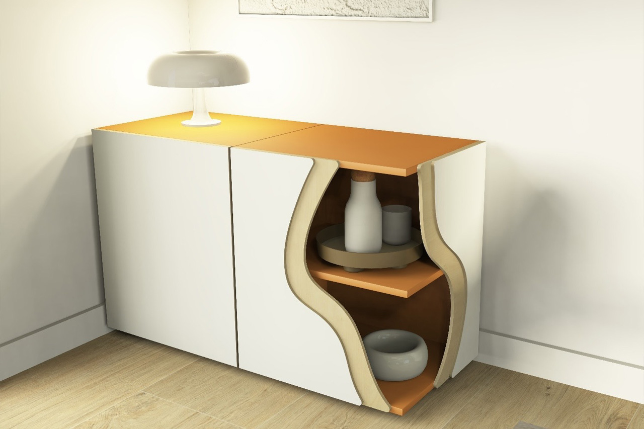 Zu Joyniture gehören sowohl Möbelstücke wie Sideboards, Beistelltische oder Regale, zusätzlich gibt es aber auch die Möglichkeit, seine bestehenden Möbel mit neuen Fronten oder Griffen im Wunschmaß zu individualisieren.