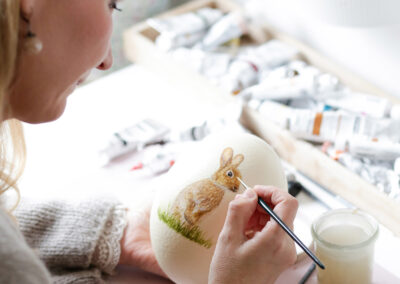 Ich liebe romantische, zauberhafte Gärten, in denen Insekten, Gartentiere und Vögel leben und lasse mich von der Natur zu meinen Motiven inspirieren. Jeden Tag besuchen mich eine kleine Haselmaus, dicke Hummeln und Bienen, die Glitzerlibelle, Eichhörnchen oder auch puschelige Rotkehlchen in unserem Bauerngarten – wie soll ich da widerstehen und sie nicht malen? Alle Motive entstehen am Anfang an meinem Maltisch. Öl-bzw. Acrylfarbe, feinste Pinsel, Geduld und Liebe zum Detail machen die Bilder zu etwas besonderem. Damit Kunst für alle Menschen erschwinglich bleibt, biete ich nicht nur Originale, sondern eine breite Produktpalette für fast jeden Geldbeutel an. Natur- und Artenschutz haben einen großen Platz in meiner Kreativität, und so hoffe ich, durch meine Kunst auf die Vielfalt und Schönheit der Natur aufmerksam zu machen.