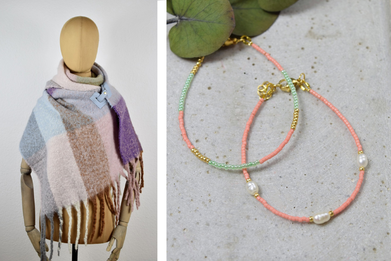 Im Winter erweitere ich mein Sortiment um exklusive Accessoires wie Schals mit Verschluss und handgefertigte Leder-Bindegürtel, die mein kreatives Schaffen ergänzen.