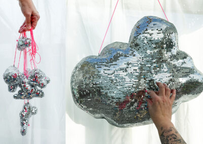 Verglitzerte Objekte liebt anni auch. Daher gibt es Wolken, Schrift & vieles mehr mit Spiegelmosaik verziert. Die Ojekte sind von anni handgeschnitzt aus Styropor und so ist jede Form einzigartig.