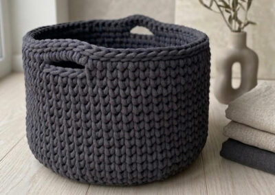 Wir häkeln unsere Körbe in vielen verschiedenen Größen, Farben und Formen. Sie sind nützlich und zugleich dekorativ in Küche, Bad, Wohnzimmer, auf dem Schreibtisch an der Garderobe, …